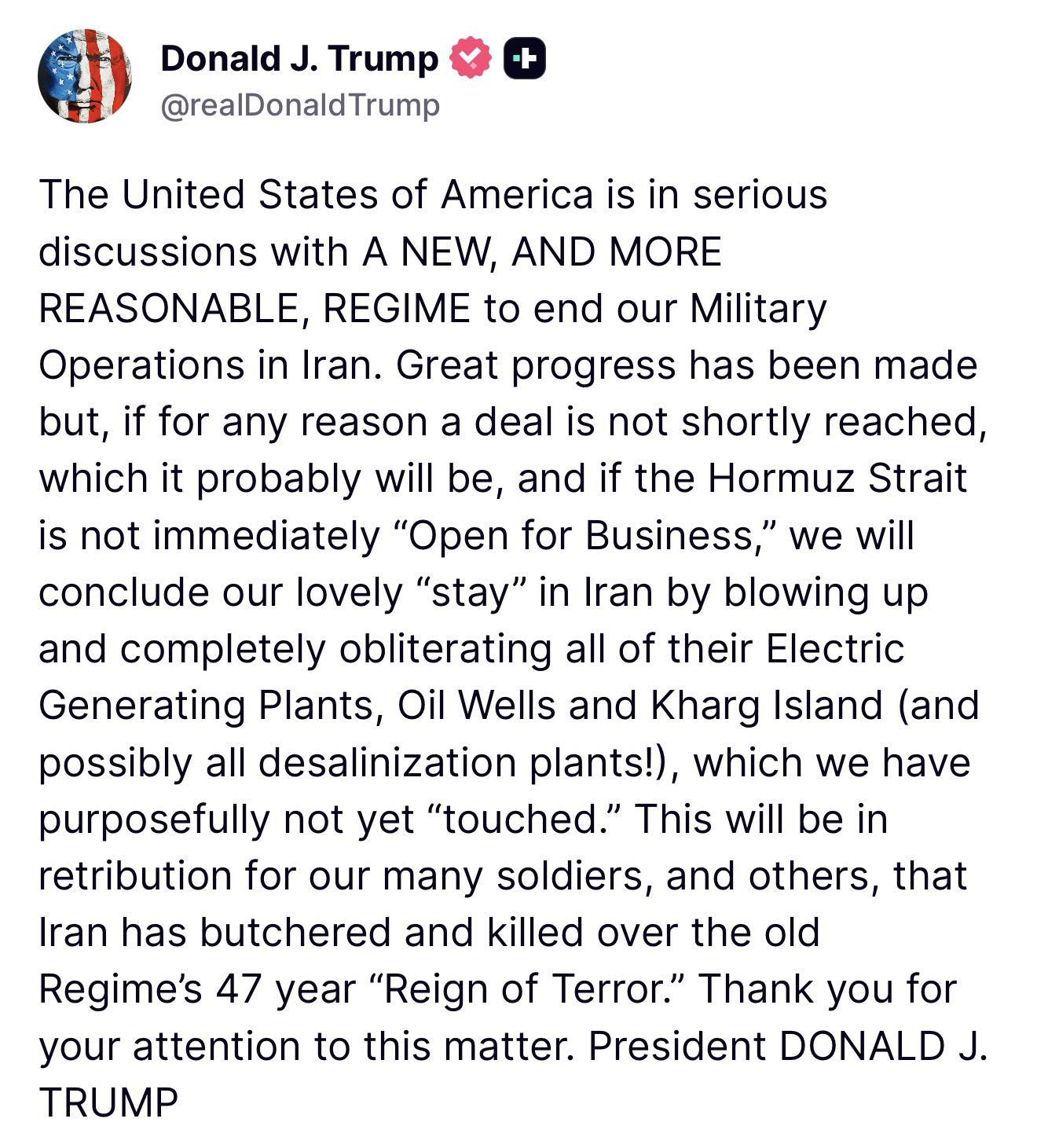 Trump claims Iranians want the United States to "please keep bombing"